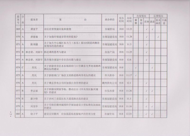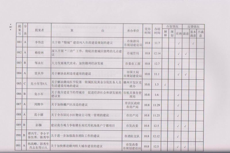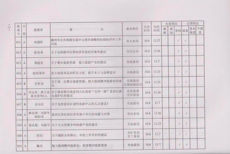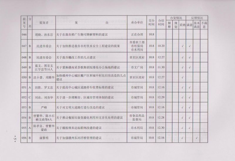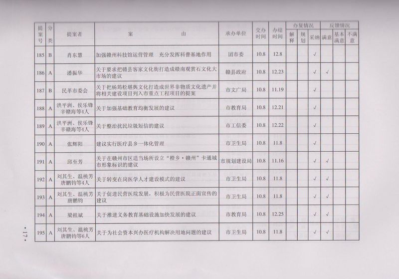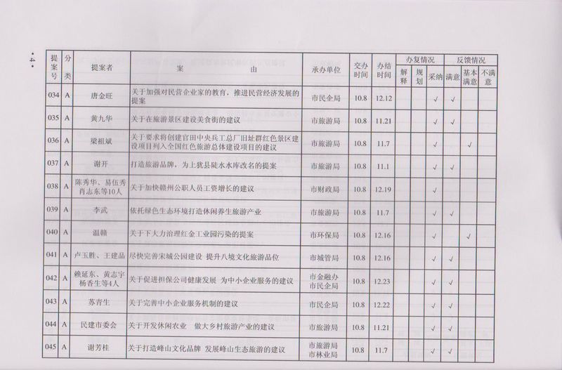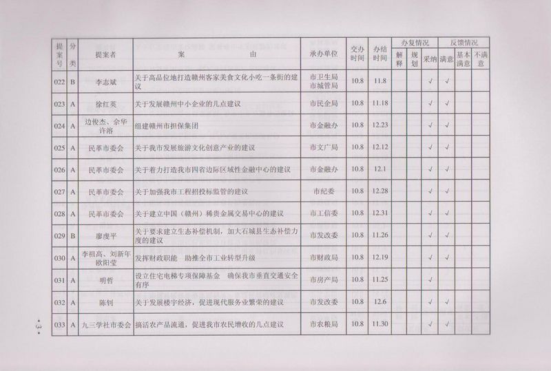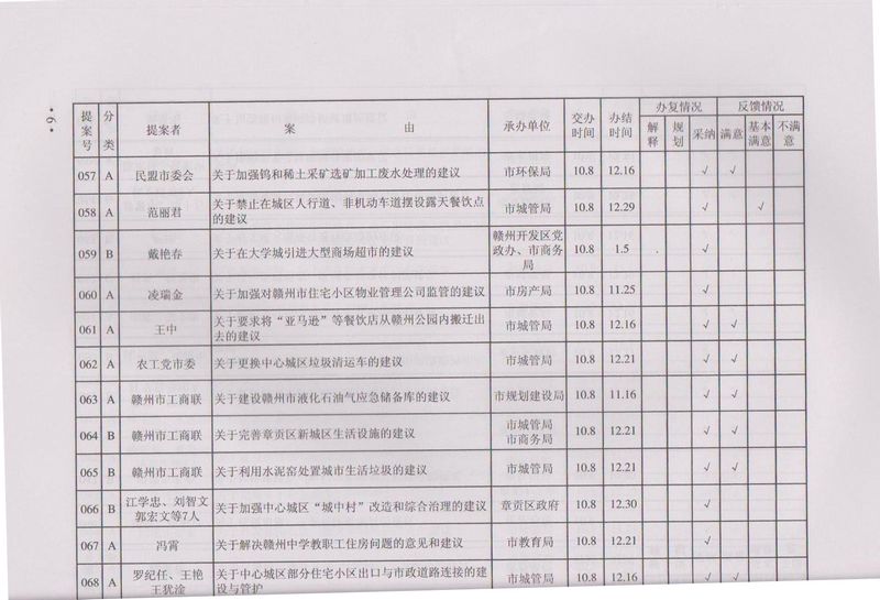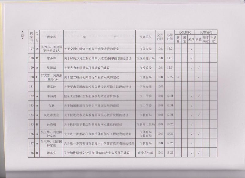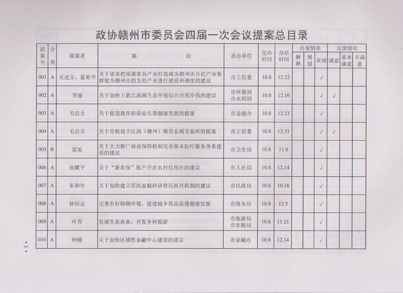 市政协四届一次会议提案目录