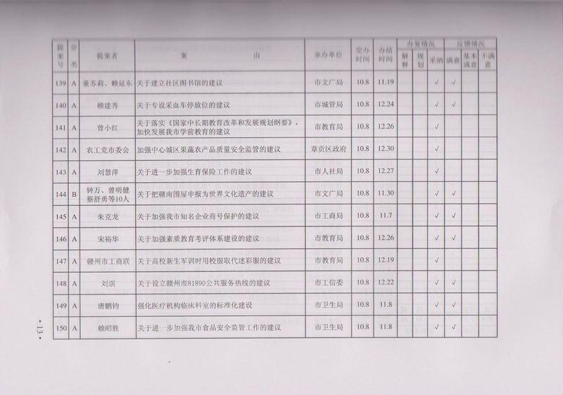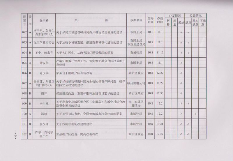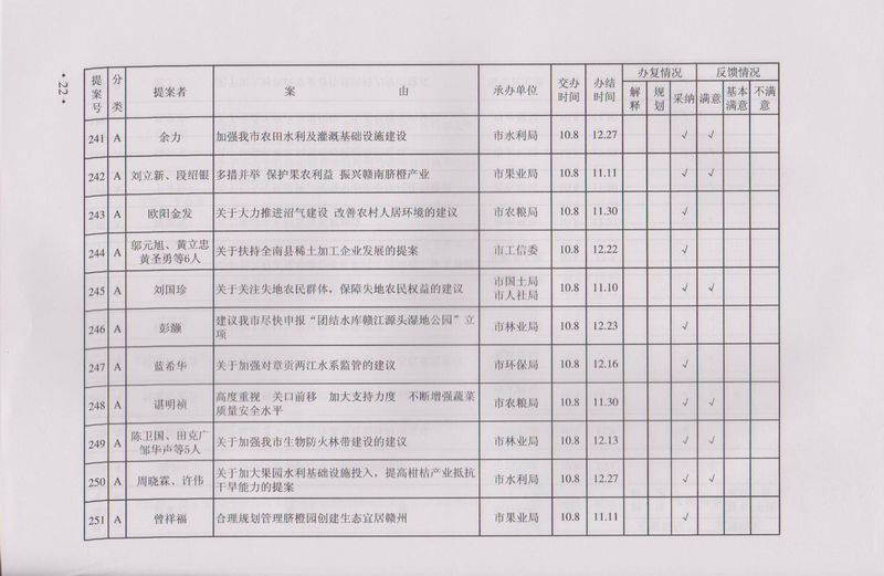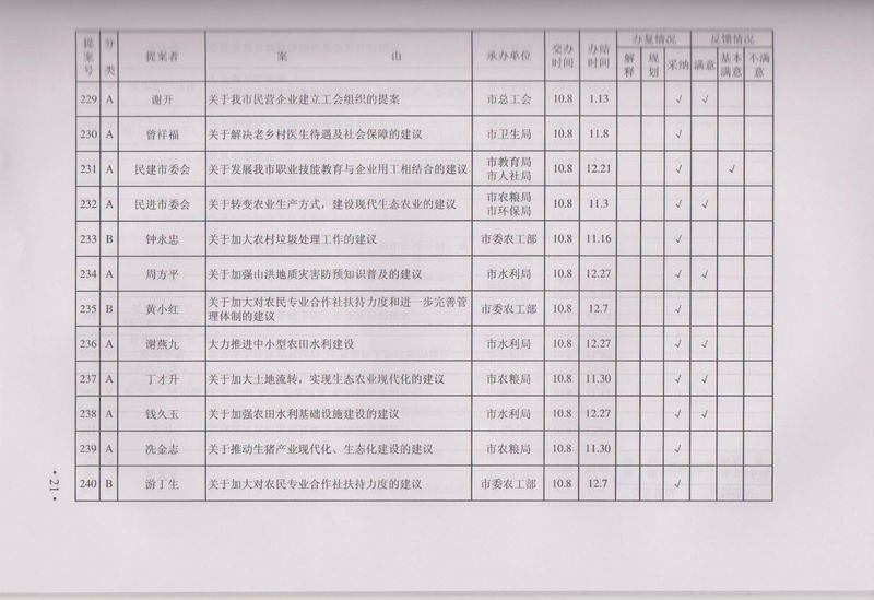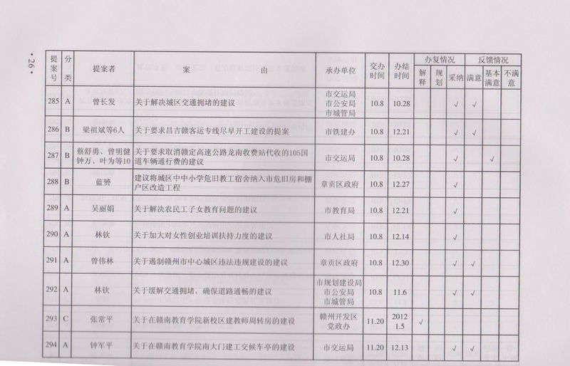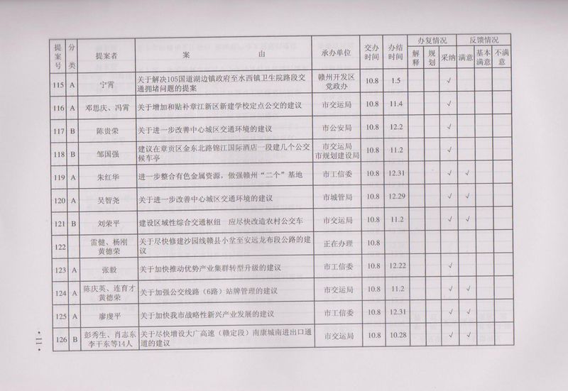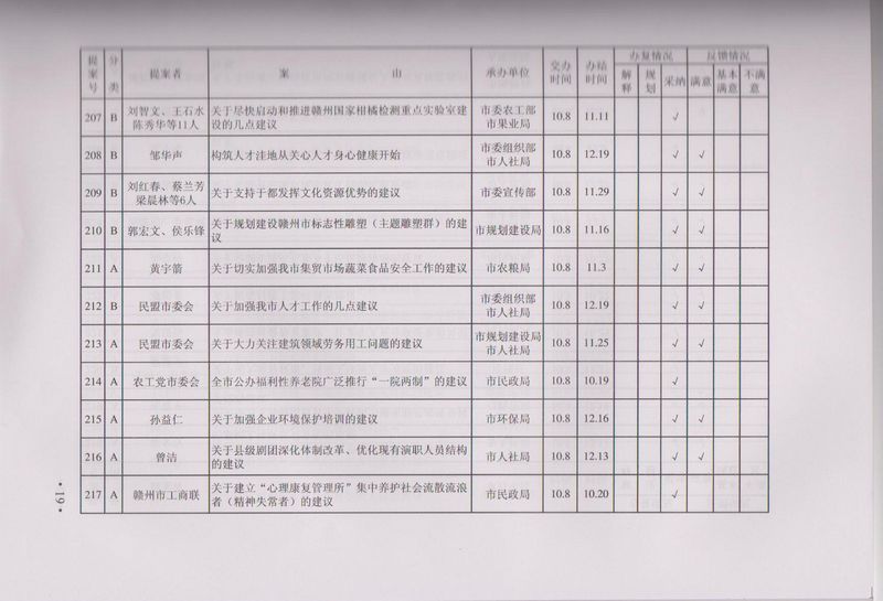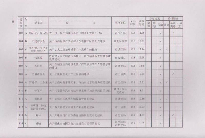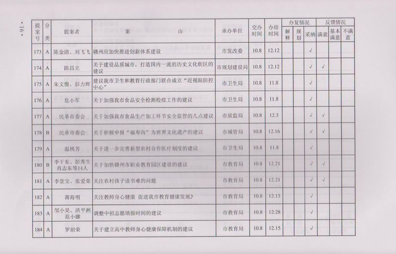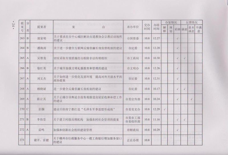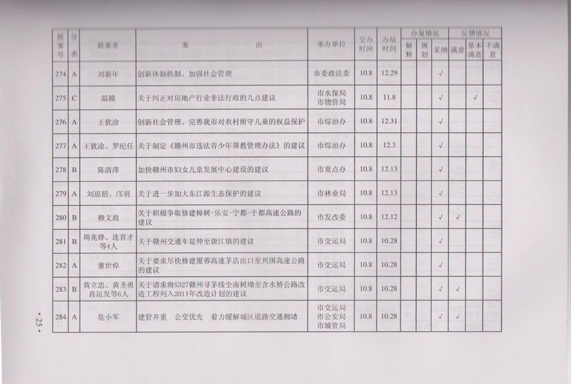 市政协四届一次会议提案目录
