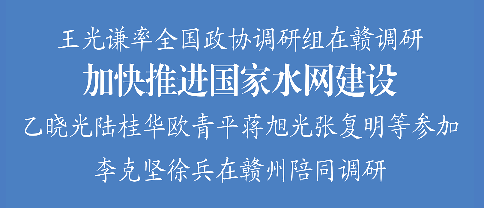 5月18日至21日,全国政协副主席、民盟中央常务副主席王光谦率全国政协人口资源环境委员会调研组,深入我市赣县区等地,开展“加快推进国家水网建设”专题调研。全国政协人口资源环境委员会副主任乙晓光、陆桂华、驻会副主任欧青平,全国政协农业和农村委员会副主任蒋旭光,全国政协常委张复明等参加调研。